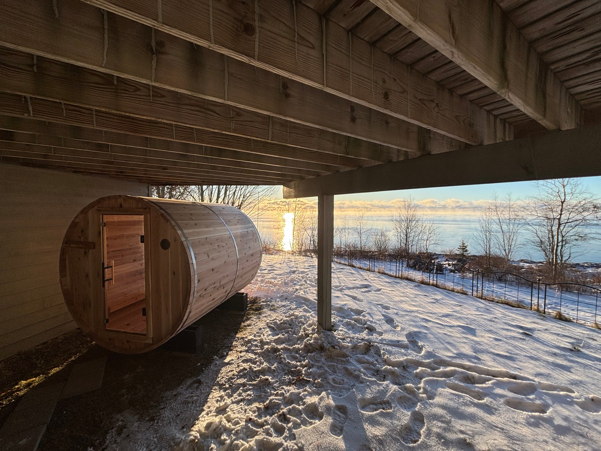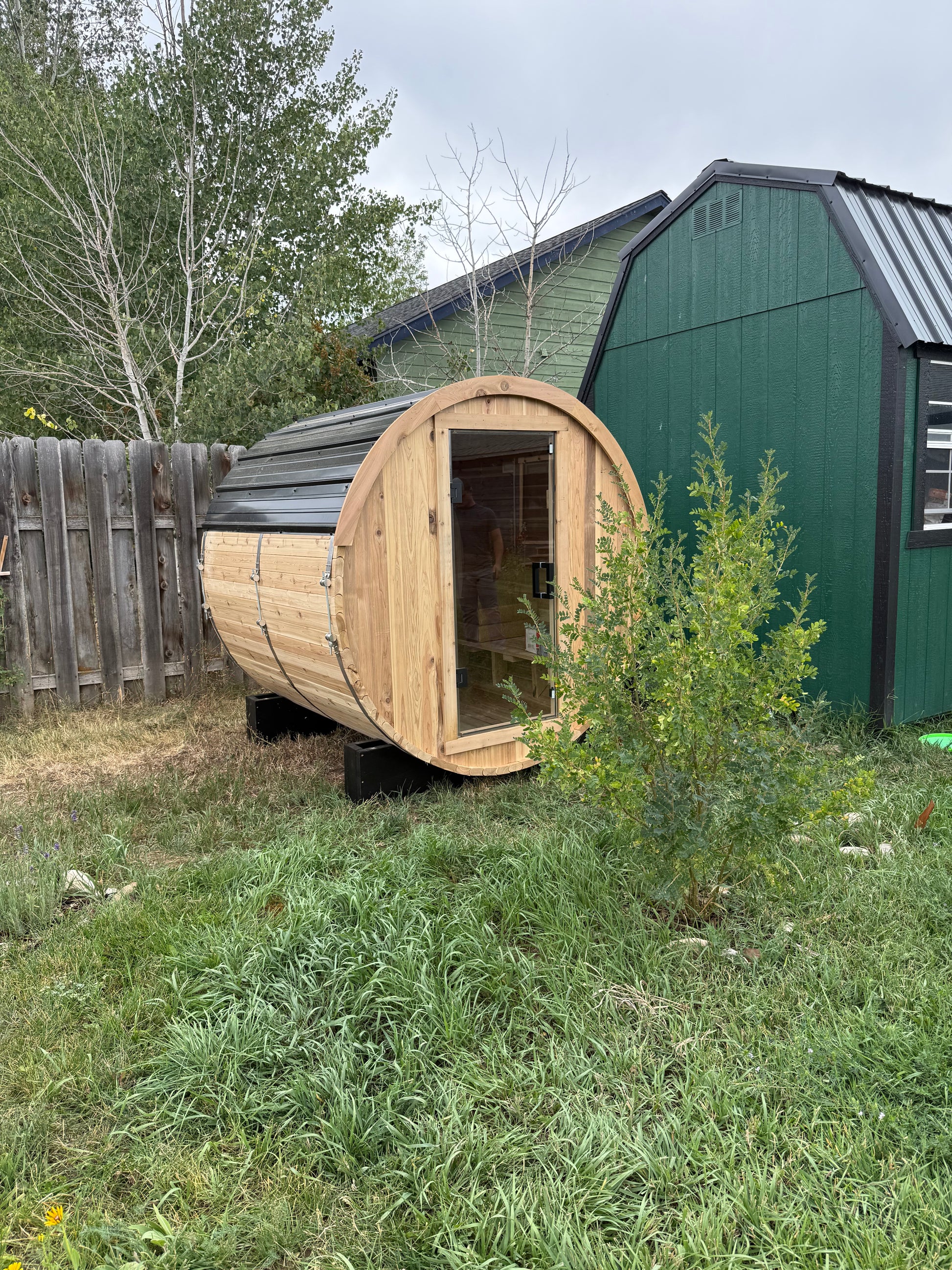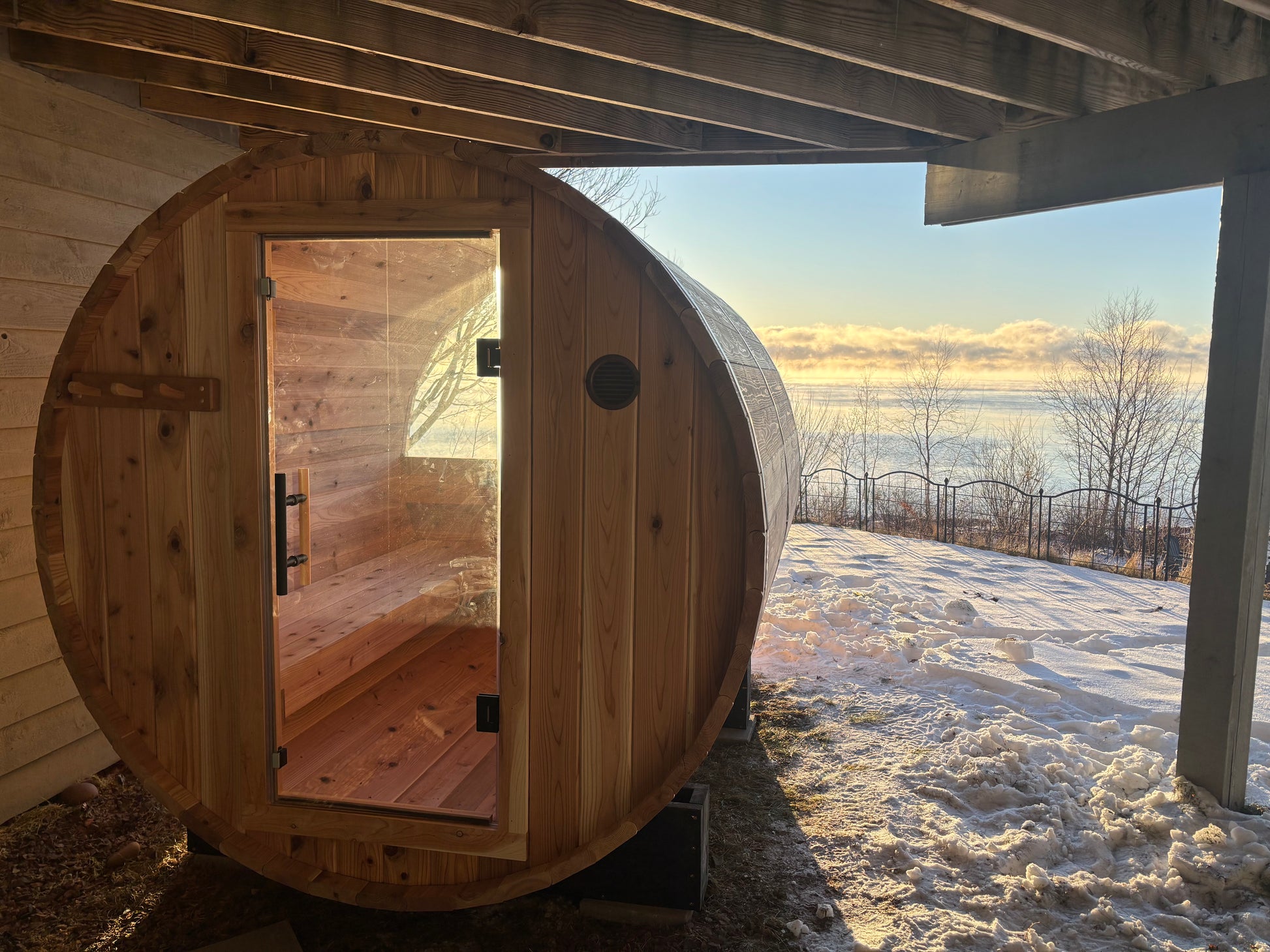 The 4 Person Blazin Barrel delivers authentic sauna therapy in a compact, elegant design. Crafted from premium Sugi cedar, this barrel sauna measures 6' x 6' x 6', providing comfortable seating for four users while maximizing heat efficiency. The superior wood quality ensures durability and enhances the traditional sauna experience with natural aromatic properties. Ideal for residential installations, this model combines functional capacity with timeless craftsmanship for those seeking genuine wellness benefits.